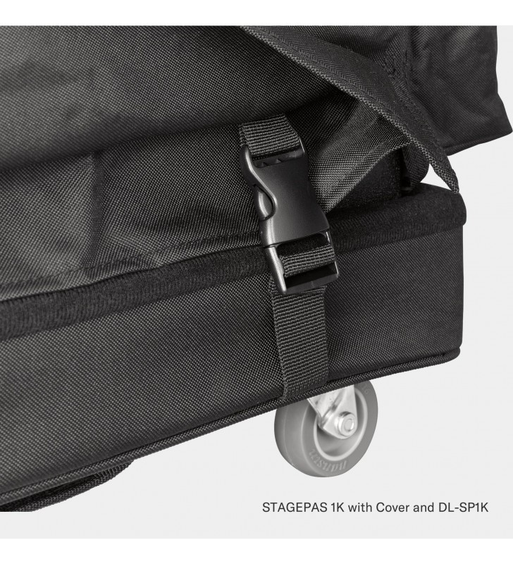 Het is voorzien van vier stevige rolwielen en kan daardoor op vrijwel elke ondergrond worden gebruikt en kan ook verbonden worden met de bijgeleverde Stagepas 1K hoes.