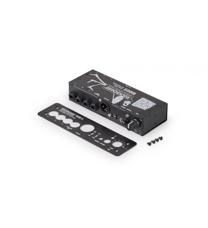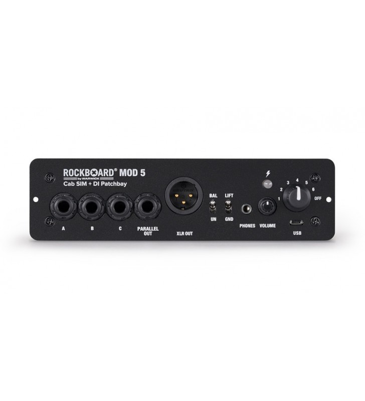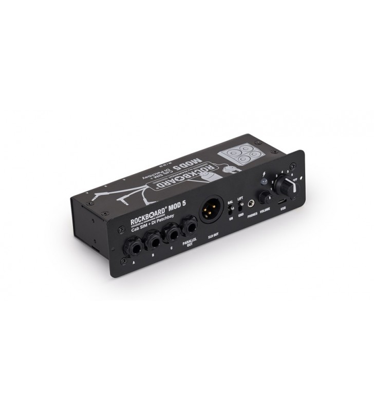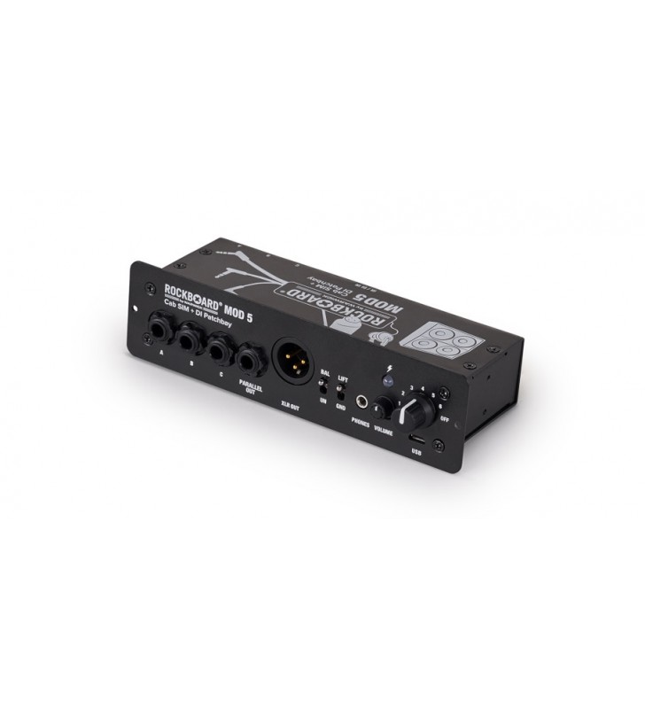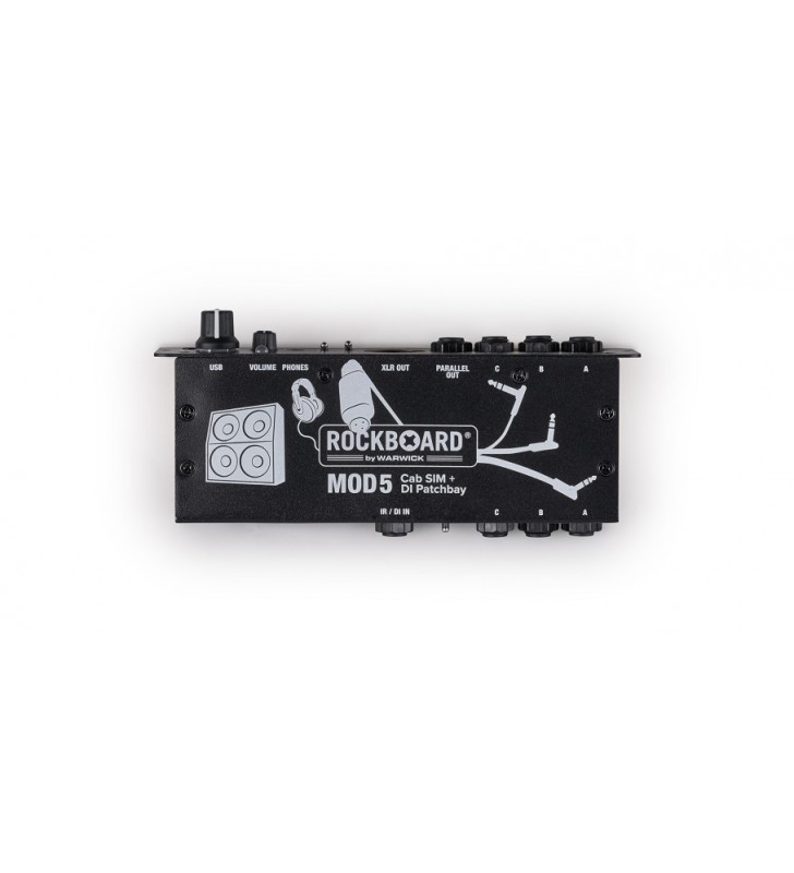De RockBoard® MOD 5 Cab SIM + DI Patchbay biedt geheel naar wens aan te passen, met IR werkenmde stereo speakerkabinet-simulatie, een actieve DI box en een simpele oplossing om al je aansluitingen bvan en naar je set-up te beheren. Of je nu een RockBoard® of elk ander merk pedalenbord gebruikt – de MOD 5 geeft je vele nieuwe mogelijkheden. De speakerkastsimulatie en DI laten je geluid direct naar de tafel gaan, zodat je altijd JOUW geluid hebt, hoe de backline van de zaal waar je speelt ook is. Wil je je favoriete speakerkast gebruiken? Geen probleem. Laad gewoon een impulse response van het geluid in je MOD 5 en je hebt het altijd bij je, waar je ook bent. Het patchbay-gedeelte is ontworpen om alle connecties van je pedalenbord naar de voorkant te sturen, zodat je een centraal toegangspunt tot je set up hebt en het maakt je aansluitingen een stuk netter. Voor stil of onderweg oefenen, biedt de MOD 5 een koptelefoonversterker met regelbaar uitgangsvolume