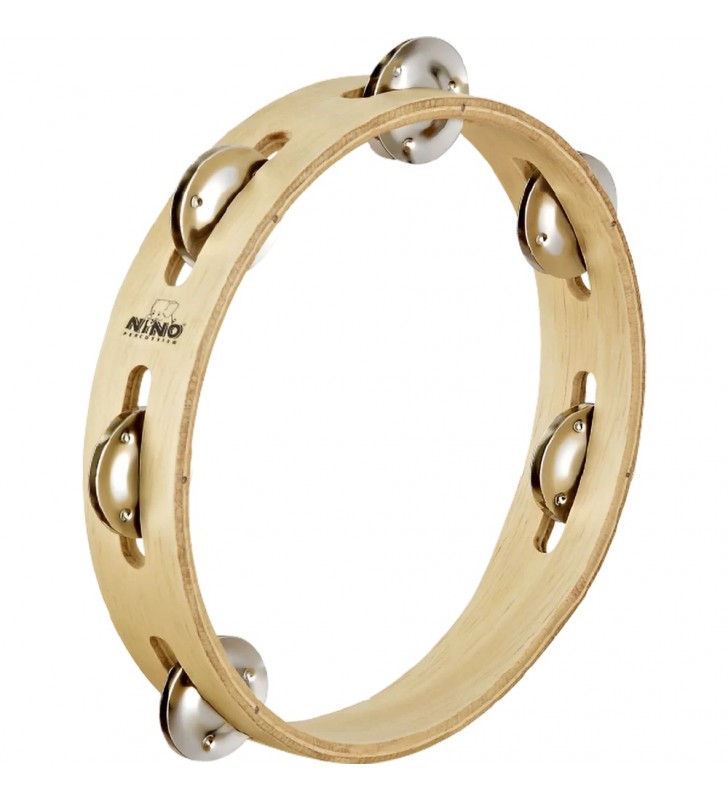 De NINO® Wood Tamboerijnen hebben een stevig houten frame en een mooi sprankelend geluid. Ze zijn verkrijgbaar in een eenrijige constructie met 6 of 8 vernikkelde stalen jingle-paren, of als een tweerijig model met 16 vernikkelde stalen jingle-paren.