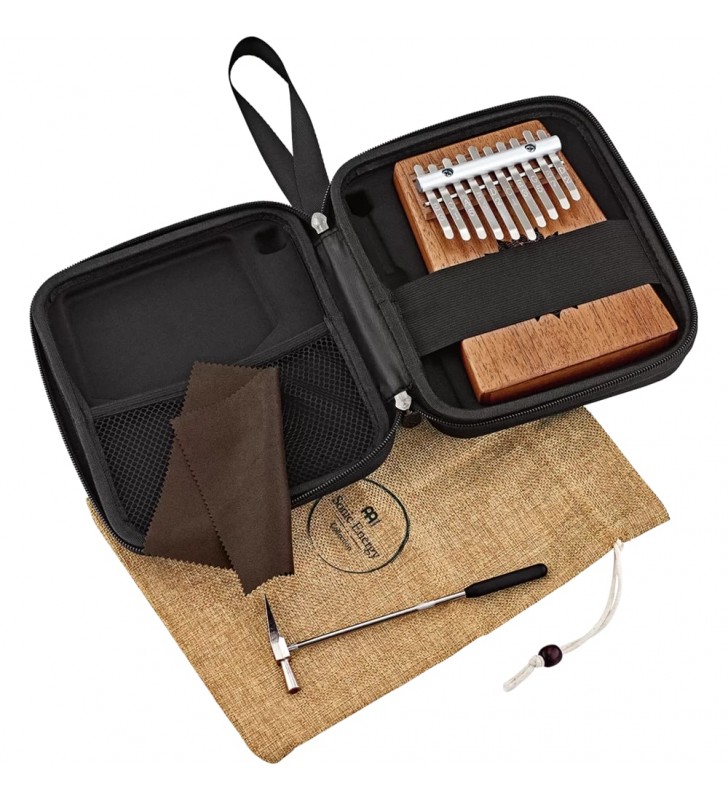 De Kalimba wordt geleverd met een hoesje zodat je hem kunt beschermen tegen krassen en andere beschadigingen. Om vlekken van je Kalimba te verwijderen en hem daarna veilig te bewaren, wordt er ook een microvezeldoek en een linnen tas meegeleverd. Daarnaast hebben we een stemhamer toegevoegd voor het geval je je Kalimba opnieuw wilt stemmen.