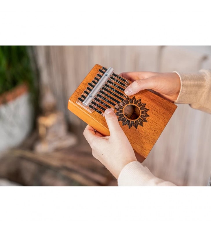 Het traditionele klankgat van deze Kalimba zorgt voor warmere tonen en een langere sustain.