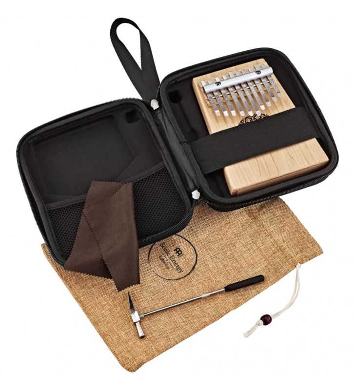 De Kalimba wordt geleverd met een hoesje zodat je hem kunt beschermen tegen krassen en andere beschadigingen. Om vlekken van je Kalimba te verwijderen en hem daarna veilig te bewaren, wordt er ook een microvezeldoek en een linnen tas meegeleverd. Daarnaast hebben we een stemhamer toegevoegd voor het geval je je Kalimba opnieuw wilt stemmen.