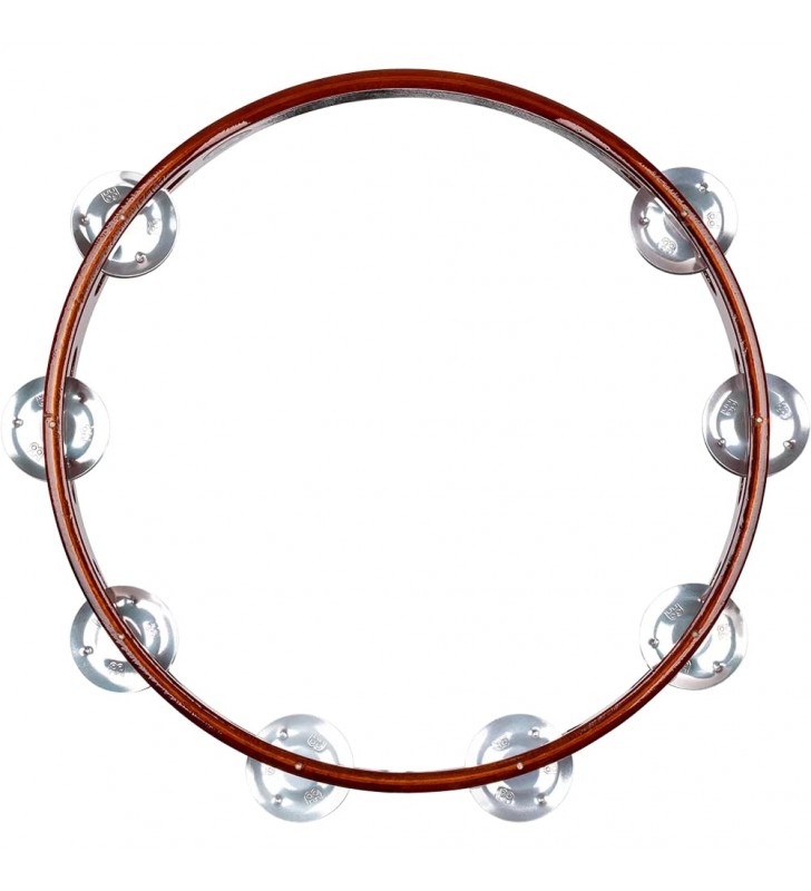 10 "houten tamboerijn, enkele rij, nikkel plated schellen - TA1WB