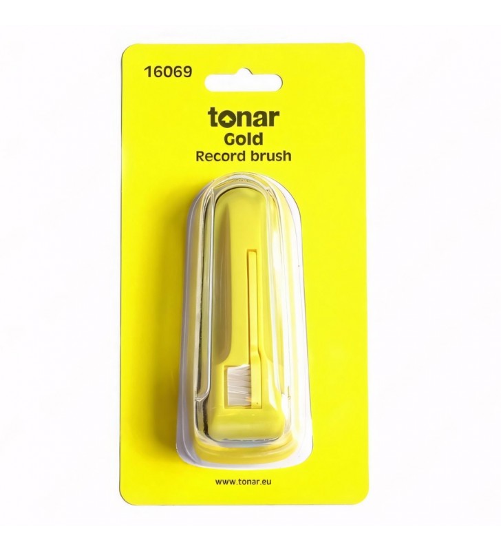 De Tonar Gold Brush gebruikt zeer fijn strak geweven fluweel om de kleinste stofdeeltjes op te pakken in de platengroef.