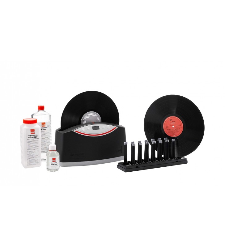 De combinatie van ultrasone reiniging en ons beproefde borstelsysteem van geitenhaar zorgt voor een zachte, groefdiepe reiniging van uw platen en een hoorbare verbetering van het geluidsbeeld.