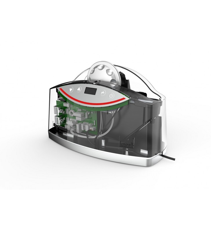 Een krachtige ultrasone transducer genereert zogenaamde cavitatiebellen die direct op het vuil inwerken en dit voorzichtig en effectief verwijderen.