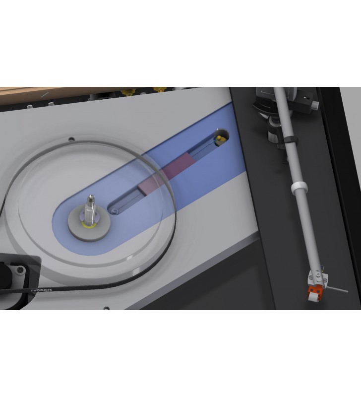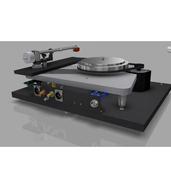 Het binnenste draaiplateau is van aluminium en wordt dankzij de elektronisch gecontroleerde motor middels een gepolijste snaar aangedreven, voor perfecte gelijkloop.