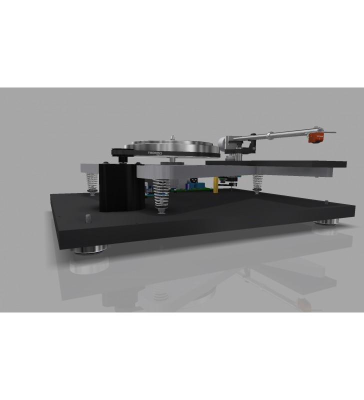 Deze high-end Thorens platenspeler bezit een sub-chassis ontwerp voor perfecte ontkoppeling van de gevoeligste draaitafel-onderdelen en zorgt voor perfecte weergave van vinyl met vrije element-keuze.