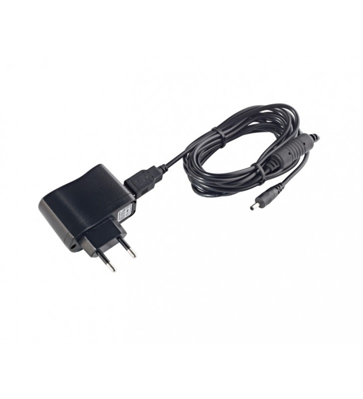 Ingang 230 V AC. Uitgang 5 V gelijkstroom. Met jack-aansluiting 3,5 mm aan de ene kant en USB-poort aan de andere kant. Lengte kabel 3 meter.
