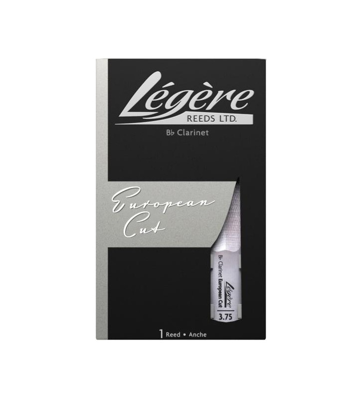 Bb-Klarinet European Cut 3.75 Kunststof Riet. Het meest comfortabele, stabiele en gearticuleerde klarinetriet dat Légère produceert. De European Cut voor Bb-klarinet is breder dan de Signature met een kortere baan en een band van materiaal langs de ruggengraat. Dit riet wordt aanbevolen voor spelers van alle niveaus, hoewel het te breed is voor de meeste Duitse mondstukken.De European Cut for Clarinet is ons meest flexibele riet. Het unieke profielontwerp zorgt voor een helder, kleurrijk maar toch warm en schoon geluid. Het reageert zonder aarzelen en glijdt gemakkelijk van de lage registers naar de hoge registers van het instrument.