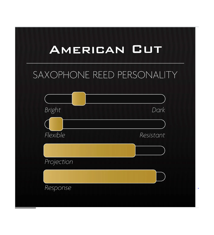 Door materiaal van de buitenkant van het riet te nemen en dit naar het hart te duwen, behoudt het riet zijn stijfheid terwijl de randen zo vrij mogelijk kunnen trillen. Deze verandering creëert een scherpe ruggengraat door het midden van het voorblad, waardoor het riet zijn unieke uiterlijk krijgt. Het onderscheidende profiel van de American Cut geeft spelers een vol, duidelijk laag register en een levendig altissimo.