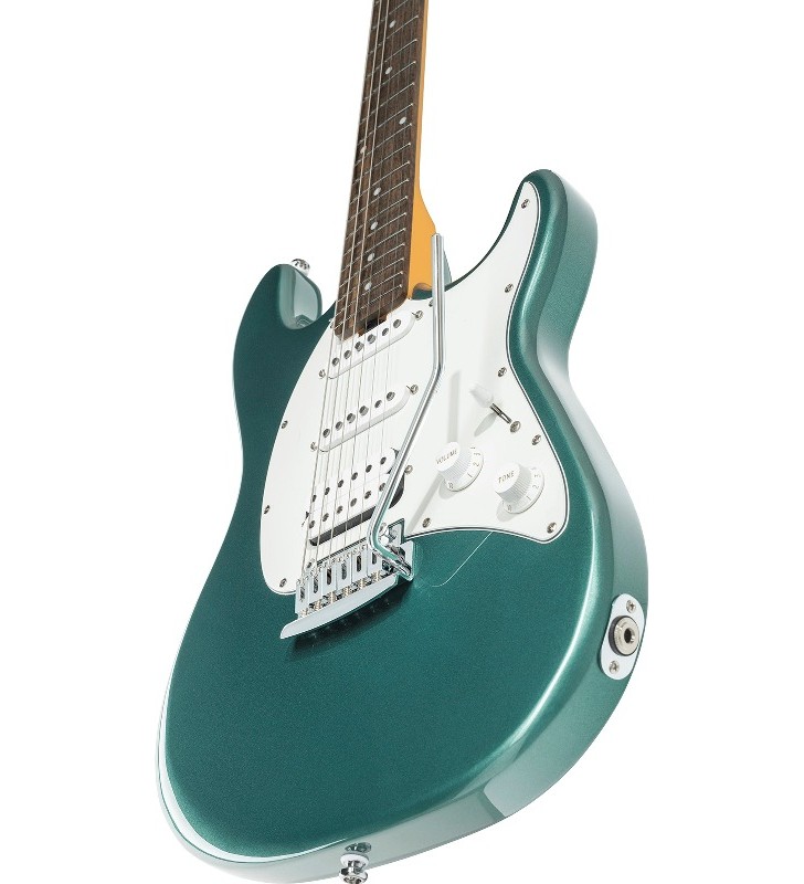 De Sterling by Music Man Cutlass Classic CT30 combineert vintage looks met moderne veelzijdigheid. Deze gitaar in de stijlvolle kleur Sherwood Green biedt het herkenbare speelgevoel en de klank van een klassieke single-coil gitaar, met de extra power van een humbucker in de brugpositie. Of je nu zoekt naar sprankelende cleans of krachtige rockklanken – de Cutlass Classic levert het moeiteloos.