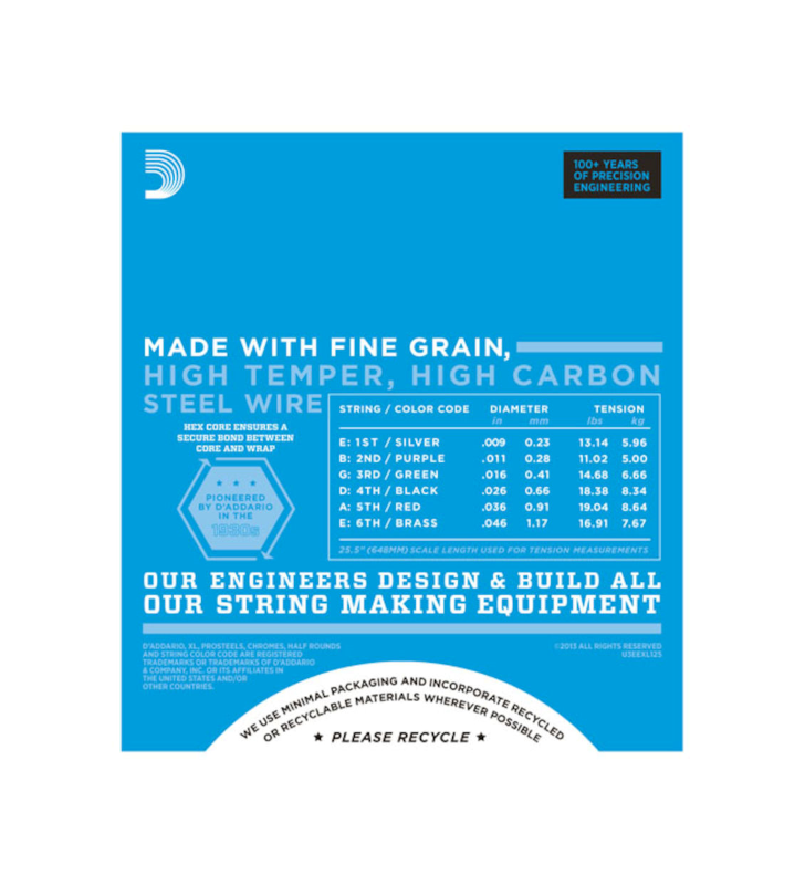 XL Nickel Wound, D'Addario's meest populaire snaren voor elektrische gitaren, zijn met precisie gewikkeld met vernikkeld staal op een zorgvuldig getrokken, hexagonaal gevormde kern van koolstofstaal. Het resultaat, snaren met een lang aanhoudende, kenmerkende heldere toon en uitstekende intonatie, is ideaal voor de meest uiteenlopende gitaren en muziekstijlen.