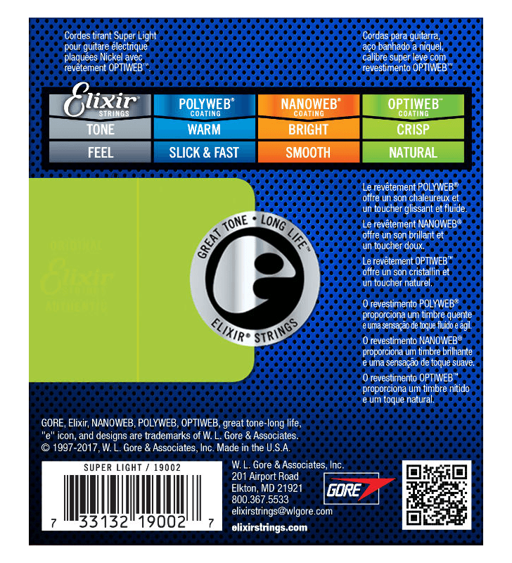 De Optiweb coating levert een uitermate natuurlijke feel op de snaren vergeleken met Nanoweb of Polyweb, met een sound die niet te onderscheiden is van een snaar zonder coating. Behalve de fantastische klank van Elixir snaren zorgt de coating voor een 3-5 keer langere levensduur!