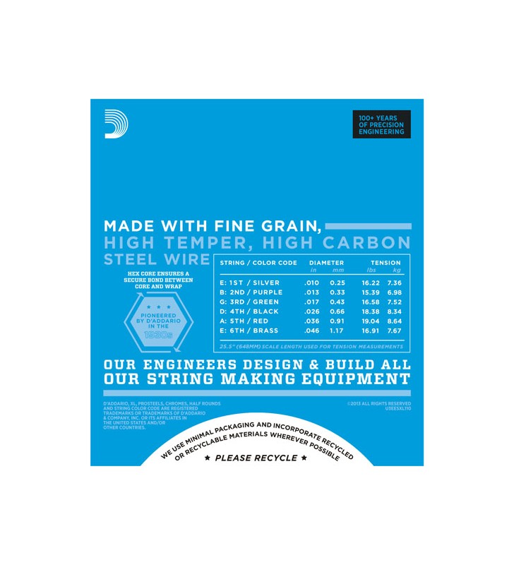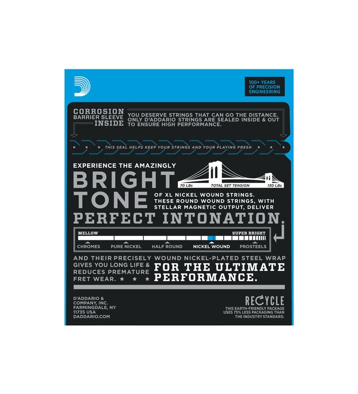 D'Addario ESXL-110 snaren hebben een kogeltje aan beide zijden van de snaar, voor gebruik op elektrische gitaren met een Steinberger systeem