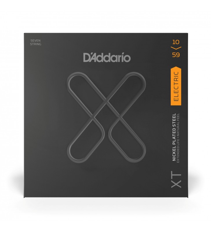 XT nikkelgecoate elektrische gitaarsnaren bieden een verbeterde breukweerstand, betere toonhoogtestabiliteit en duurzamere prestaties dan standaard elektrische snaren. De XT-coating, die op elke snaar in de set wordt aangebracht, biedt geavanceerde corrosiebestendigheid, terwijl de heldere klank en het natuurlijke gevoel van de onbehandelde snaar behouden blijven. Onder de coating zijn XT nikkelsnaren gemaakt met een NY Steel-kern, vernikkelde stalen wikkeldraad en Fusion Twist-technologie, wat resulteert in extra veerkracht en klankveelzijdigheid, uitstekend geschikt voor een breed scala aan muziekstijlen. Deze 10-59 Regular Light set, gemaakt voor 7-snarige gitaren, neemt onze populairste XT-dikte en voegt een extra bassnaar toe.