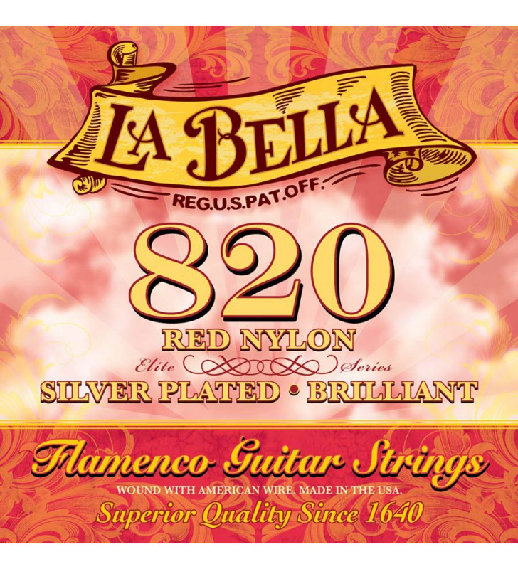 speciaal bedoeld voor Flamenco, heeft deze set een extreem heldere klank. Hoge snaren van rood nylon, verzilverde bassnaren.