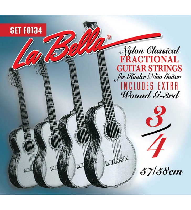 snarenset klassiek, 3/4 mensuur (57/58 cm), clear nylon trebles, silverplated basses, extra G-3 (wound)
