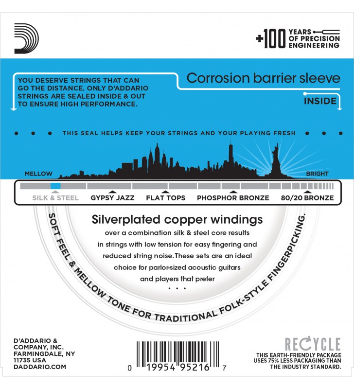 De D'Addario Silk & Steel set is ontwikkeld speciaal voor traditionele fingerstyle gitaristen, die een warme, "mellow" klank prefereren.