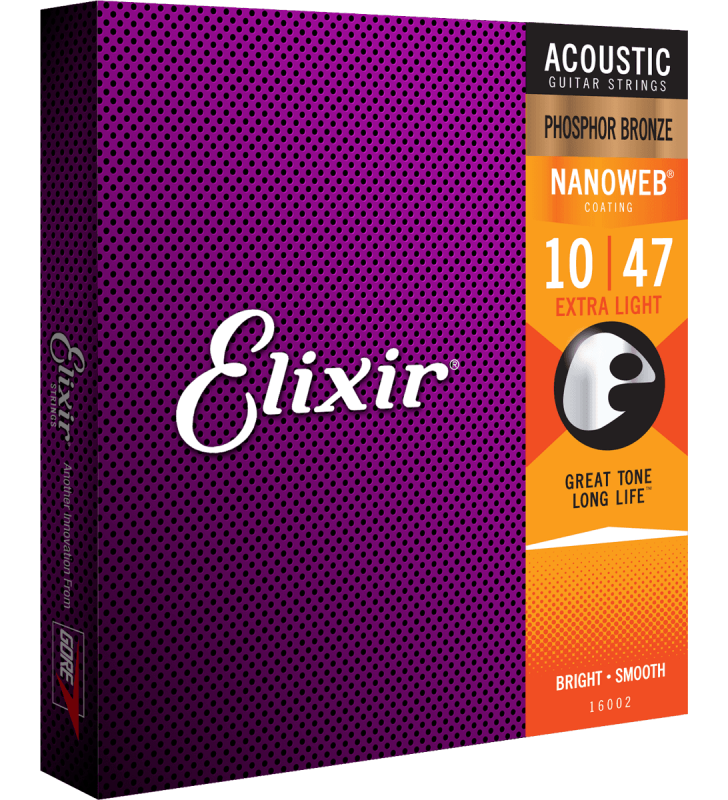 Elixir® snaren Akoestisch Phosphor Bronze met NANOWEB®Coating leveren de warme sprankelende klank van fosfor brons (een legering van koper met 8% tin en een kleine hoeveelheid fosfor).. Tegelijk behouden deze snaren hun klank langer dan elke andere snaar door de speciale coating!