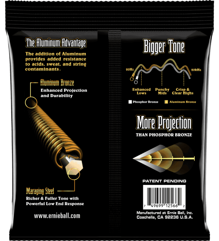 Aluminium Bronze Folk gitaar-snaren bieden meer projectie en helderheid dan traditionele bronzen snaren, evenals een verbeterde weerstand tegen corrosie. De lage frequenties zijn meer uitgesproken en de hoge tone kristalhelder.