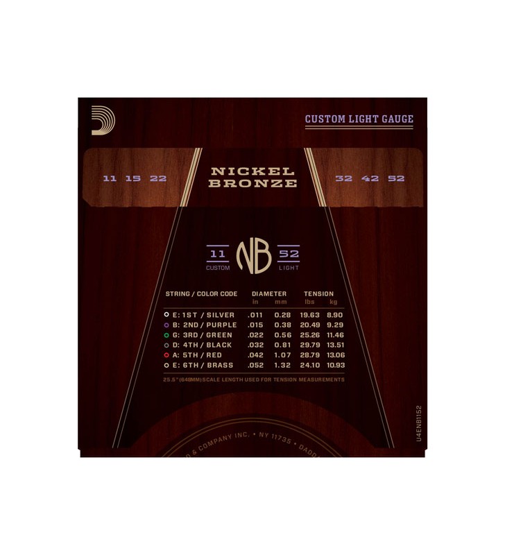 Nikkelbrons snaren zijn de premium 900 akoestische snaren van D'Addario. Met een innovatieve combinatie van vernikkeld fosforbrons gewikkeld op een koolstofrijke NY stalen kern, brengen deze snaren de unieke tonale kenmerken van elke gitaar naar voren, waardoor de natuurlijke stem echt kan schijnen. Nikkelbrons levert ongeëvenaarde helderheid, resonantie en projectie, evenals een uitstekende balans en harmonisch rijke boventonen. Spelers zullen ook genieten van verbeterde afstemstabiliteit en hogere breukweerstand, dankzij door D’Addario ontworpen NY Steel-kernen en gewone stalen snaren.