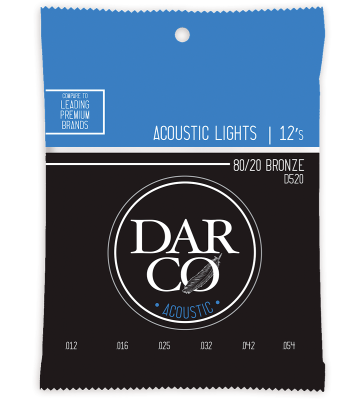 Darco D520 set stalen snaren voor western gitaar, 80/20 brons legering, Acoustic Light .012 - .054.