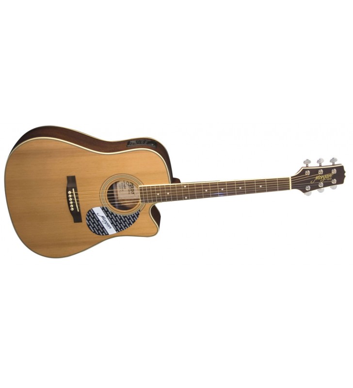 De Morgan W121-SCE heeft met zijn massief cederen bovenblad en mahonie zij- en achterkant een volle, warme klank. Uitgevoerd met een element en Fishman Presys voorversterker (met ingebouwd stemapparaat!) klinkt hij ook fantastisch op een versterker!