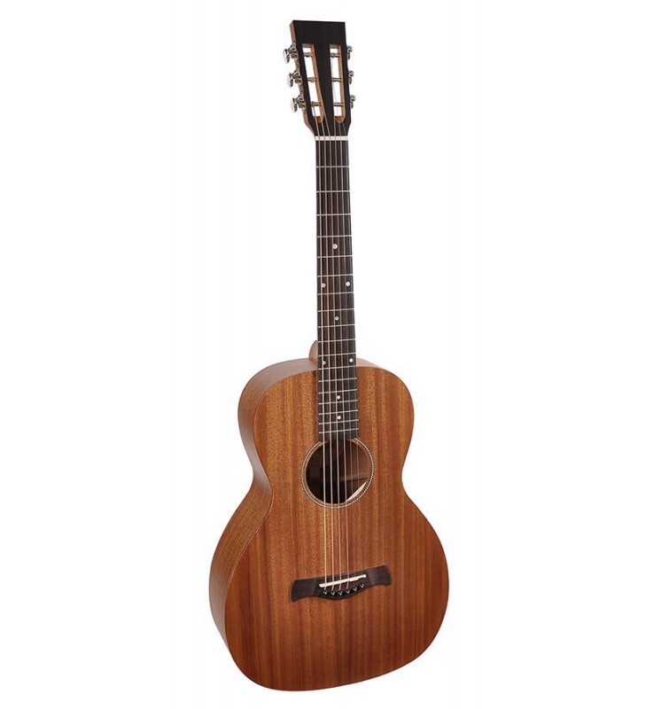 Deze parlor gitaar is gemodelleerd naar ontwerpen uit vooral de jaren dertig , benadrukt traditie en is daarmee uitermate geschikt voor fingerstyle spelers (mede door de 46mm brede hals).