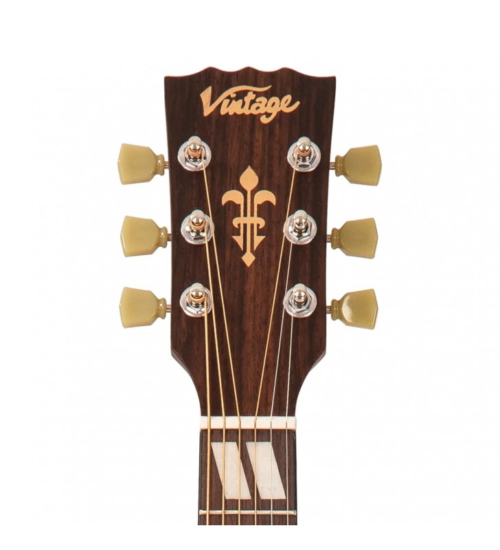 Soepele stemmechanieken met tulpknoppen zorgen voor een stabiele afstemming en, standaard uitgerust met hoogwaardige snaren uit de VS, presteert en klinkt de Vintage Historic Series Folk-akoestische gitaar net zo goed als hij eruitziet, de ideale keuze voor thuis, op het podium of in de studio.