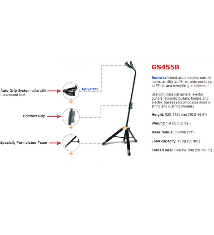 GS455B Gitaarstatief, Auto Grip