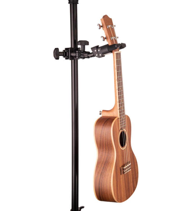 Handige ukulele hanger voor aan een microfoonstandaard, lessenaar etc.
