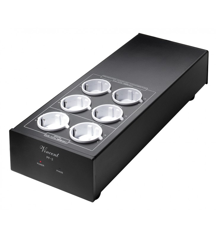 Het Vincent PF-2 powerfilter elimineert alle storende invloeden (zoals zoemen) in je Hifi of Home Cinema systeem die veroorzaakt worden door het elektriciteitsnet.