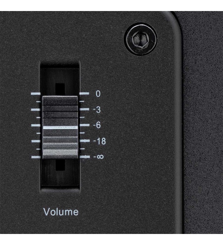 De volumeregeling van de fader en de basreflexpoort op het voorpaneel zorgen voor gebruiksgemak en plaatsing.