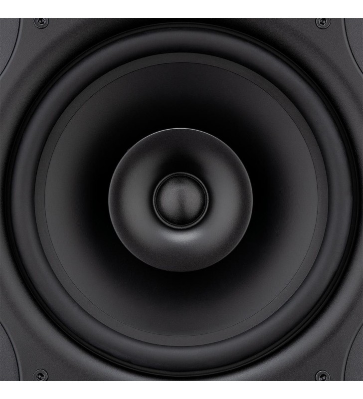 We hebben dit opgelost door een coaxiaal 2-weg ontwerp (of dubbel concentrisch) te creëren, met de tweeter in het midden van de woofer gemonteerd.
