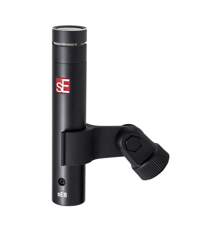 De sE8 wordt compleet geleverd met een windscherm om windgeruis te voorkomen en een robuuste microfoonklem met draadadapter die past op elke microfoonstandaard.