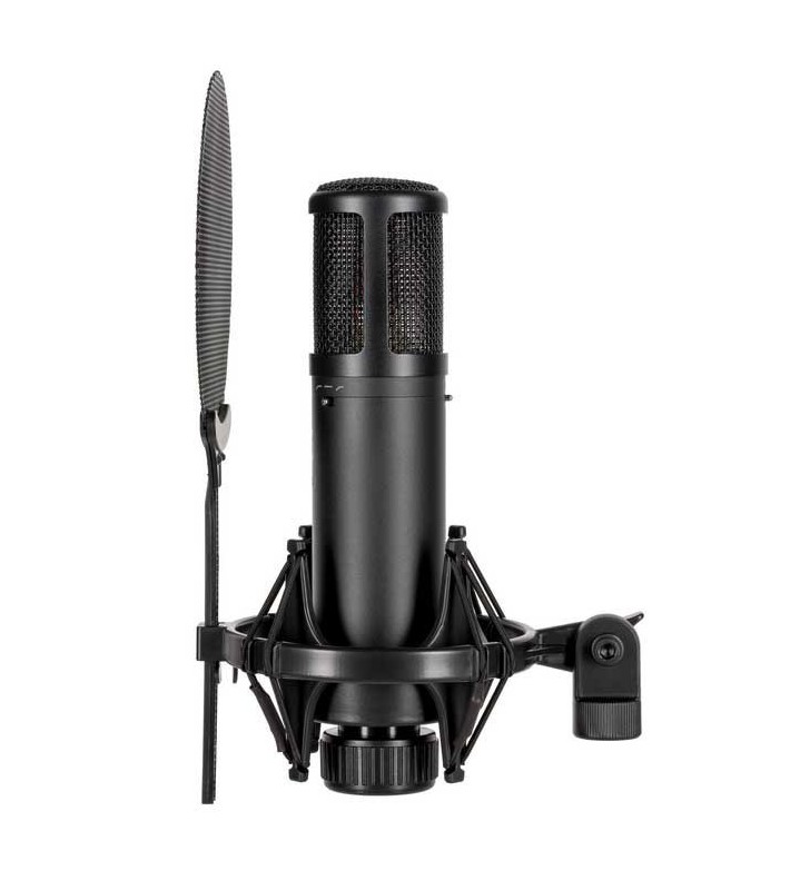 Standaard accessoires De sE2300 wordt ook compleet geleverd met het Isolatiepakket van sE, dat bestaat uit een op maat gemaakte schokmount, geïntegreerd pop-filter en een draadadapter die past op elke microfoonstandaard.