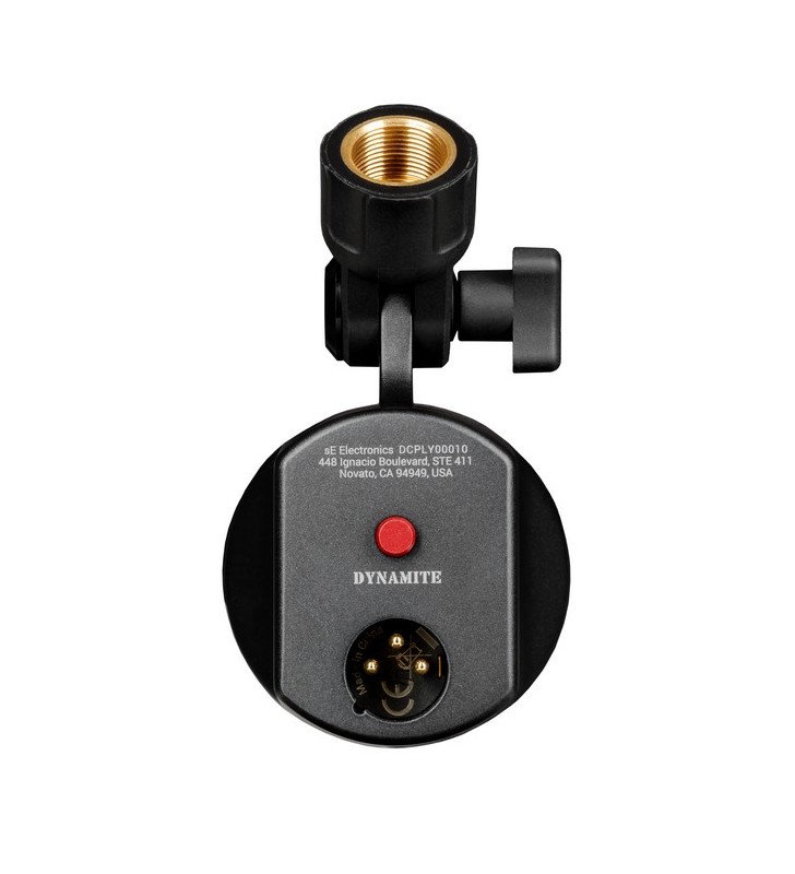 De knop bedient de geïntegreerde DYNAMITE-voorversterker. Wanneer de knop wordt ingedrukt, biedt de DynaCaster 30 dB extra versterking, ideaal voor spraak en zachtere bronnen. Dit vereist +48V fantoomvoeding.