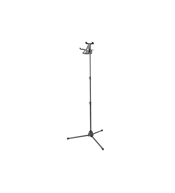 De combinatie van de standaard en de tablet-pc-houder ondersteunt u op het podium, thuis of in de studio. Het unieke klemmechanisme bevat alle gangbare Tablet PC-modellen zoals iPad mini, iPad, iPad Air, iPad Pro, Amazon Kindle, Amazon Fire, Samsung Galaxy Tab, Google Nexus, Asus Transformer of Microsoft Surface in afmetingen van 120 tot 222 mm veilig en veilig.