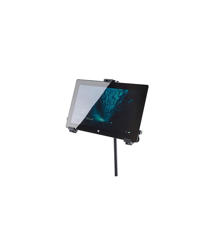 De individueel verstelbare steunarmen kunnen worden gebruikt voor het gebruik van tablets in de hoogte van 222 tot 334 mm en breedte van 128 tot 232 mm (bijvoorbeeld iPad, iPad Air, iPad Pro, Amazon Fire HDX 8.9, Samsung Galaxy Tab van 9.7, Google Nexus 9, Asus Transformer of Microsoft Surface evenals Surface Pro).