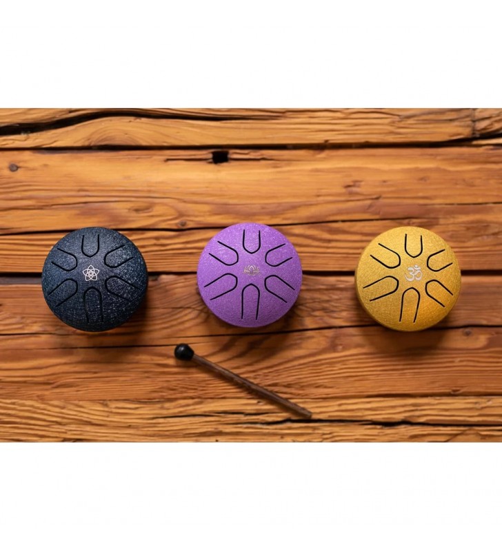 Onze percussiehandpan met 8 toonvelden is gemakkelijk te bespelen, zelfs voor beginners zonder enige muzikale voorkennis. De telkens gedefinieerde stemming omvat alleen tonen die bij elkaar passen. De serie klinkt niet alleen rustgevend en ontspannend, maar boeit iedereen ook met zijn heldere tonaliteit en kathedraaleffect. Het wordt bijvoorbeeld gebruikt als percussie-instrument maar ook voor bemiddeling en in therapie. Stemming D mineur met C als 7e, ook wel CELTIC-stemming genoemd.