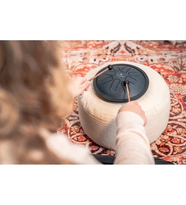 De trommel met een diameter van 7 inch kan door iedereen en overal worden bespeeld, ongeacht de vaardigheid. De vooraf afgestemde toonladder betekent dat er geen verkeerde noten zijn, en het geluid is etherisch en rustgevend (zoals een zachte stalen pantrommel).