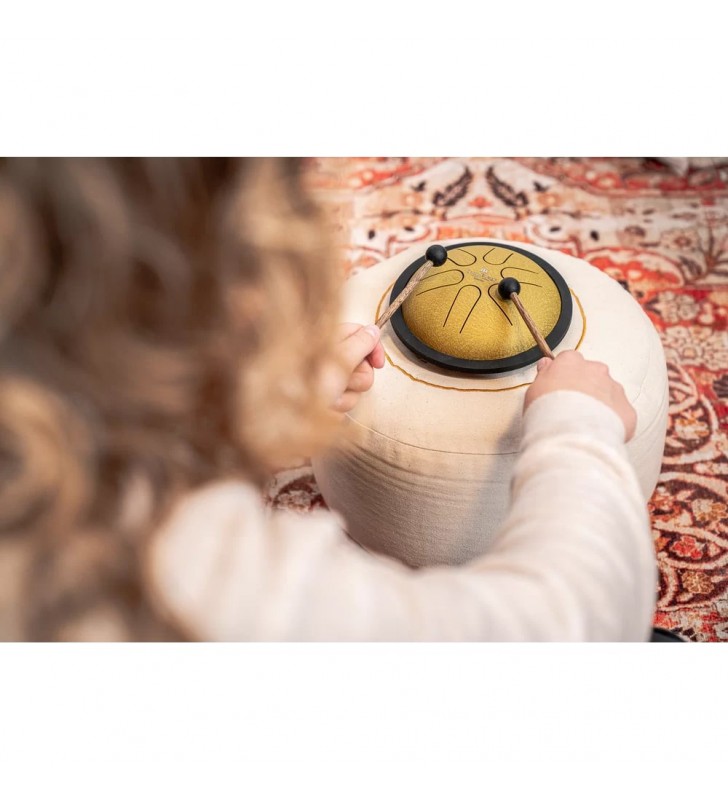 Van Meinl Sonic Energy is de Mini Steel Tongue Drum met voorgestemde noten die elke muziekliefhebber, leraar of beoefenaar van geluidstherapie kan spelen. Deze verkleinde versie van onze standaard drums met stalen tong is een leuk formaat voor eindeloze speelmogelijkheden. Van yoga en geluidstherapie tot klaslokalen, kantoren of je salontafel, deze trommel met een diameter van 15 cm kan door iedereen en overal worden bespeeld, ongeacht je vaardigheid. De vooraf afgestemde toonladder betekent dat er geen verkeerde noten zijn, en het geluid is etherisch en rustgevend (zoals een zachte stalen pan-drum). Inclusief twee zachte rubberen hamers voor een volle en rustige toon.