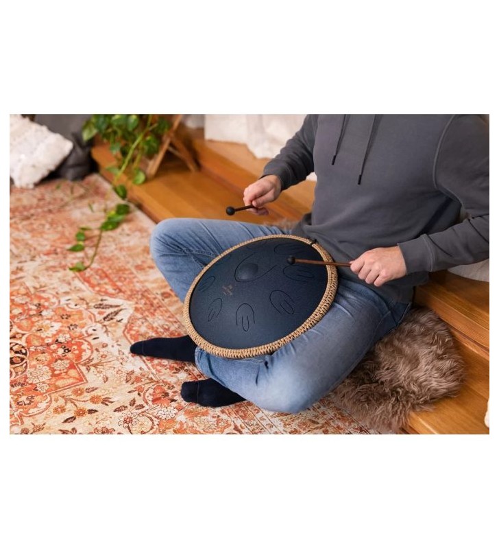 Onze percussiehandpan met 8 toonvelden is gemakkelijk te bespelen, zelfs voor beginners zonder enige muzikale voorkennis. De telkens gedefinieerde stemming omvat alleen tonen die bij elkaar passen. De serie klinkt niet alleen rustgevend en ontspannend, maar boeit iedereen ook met zijn heldere tonaliteit en kathedraaleffect. Het wordt bijvoorbeeld gebruikt als percussie-instrument maar ook voor bemiddeling en in therapie. Stemming D mineur met C als 7e, ook wel CELTIC-stemming genoemd.