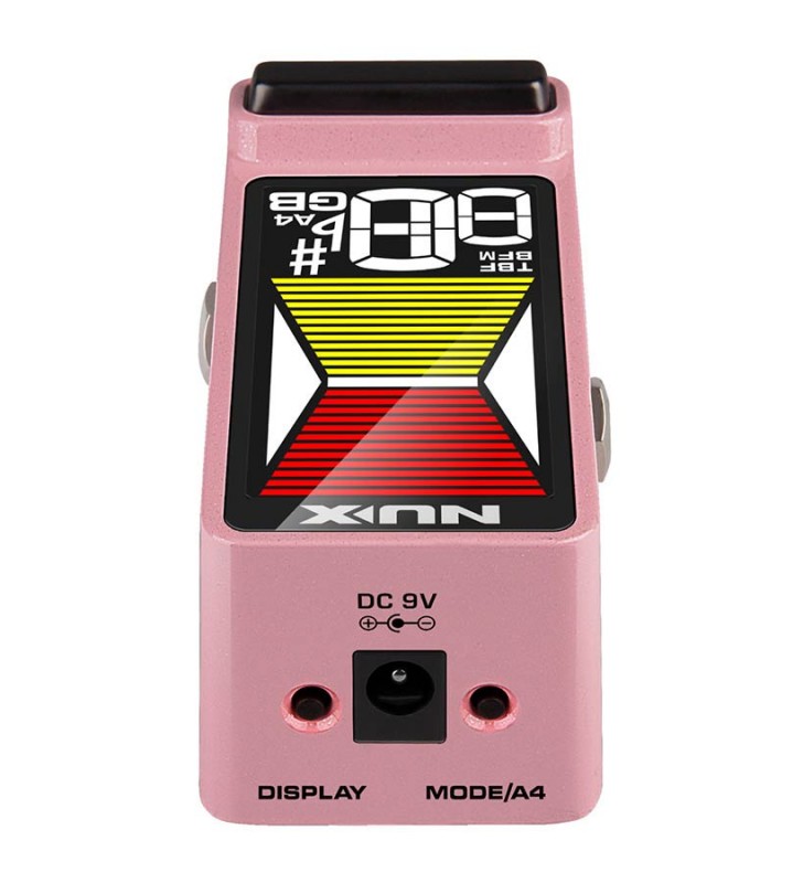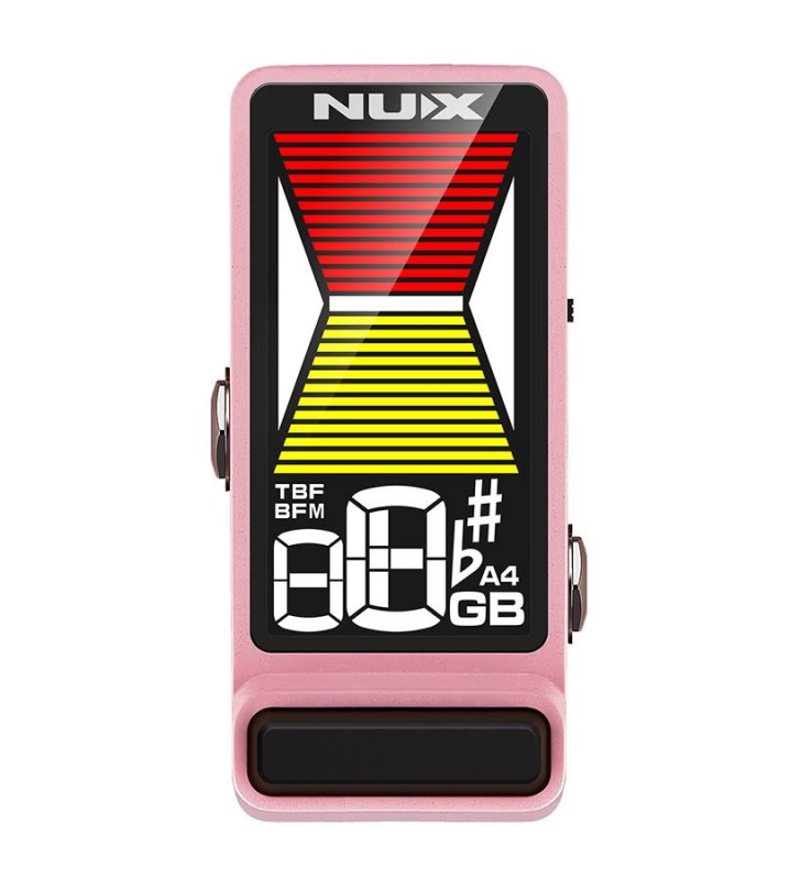 Mooi roze is niet lelijk: de NUX Flow Tune Mini stemt snel en nauwkeurig en ziet er ook nog eens opvallend uit.