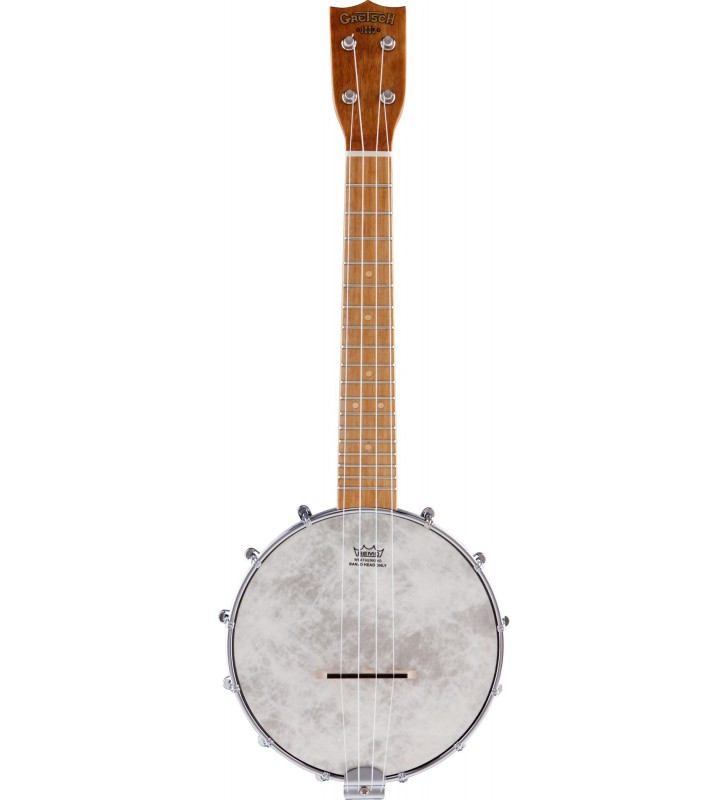 De G9470 "Clarophone" banjo-ukelele (of banjolele of ukelelebanjo) heeft een esdoorn hals en fretboard evenals een esdoorn achterkant en "rim" met een antiekkleurig satijnglans lak.