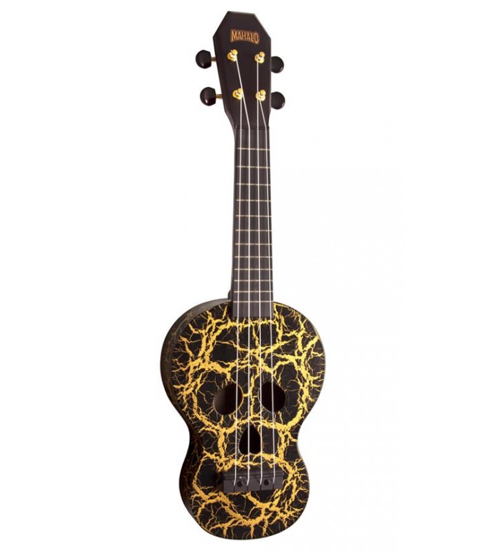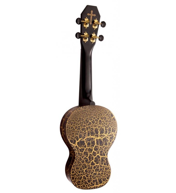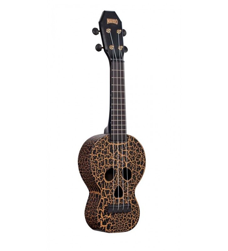 Unieke creatieve ontwerpen die het plezier van het spelen van ukelele stevig in uw handen leggen. Het Skull-model met zijn innovatieve omgekeerde body in de vorm van een schedel; Verfwerk met gecraqueleerd botafwerking en een doodskistvormige kop completeert het unieke ontwerp.