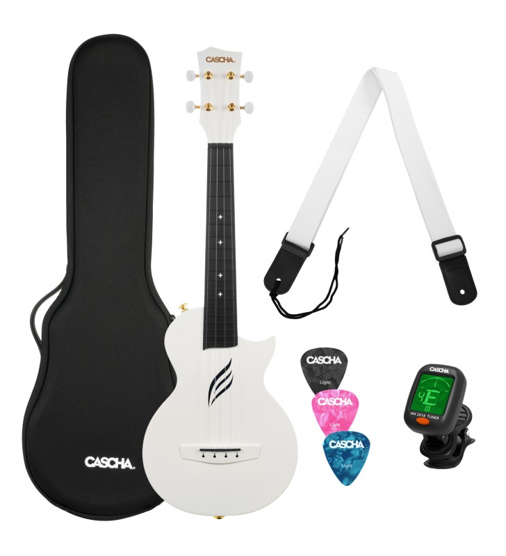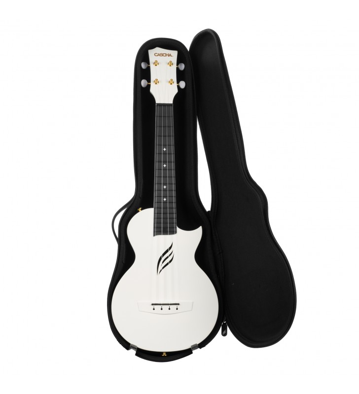 De witte Cascha Carbon Ukulele overtuigt door zijn uniekheid en het uitstekende geluid. Het is van top tot teen gemaakt van koolstofvezel (Carbon) . Daarom is de ukelele gemakkelijk schoon te maken en over het algemeen beter bestand tegen invloeden van buitenaf. Vergeleken met gewone ukeleles heeft de Cascha Carbon Ukulele een helderder en meer gedifferentieerd geluid en kan hij ook indruk maken met zijn duurzame en hoogwaardige constructie. Dankzij het lichte gewicht en de dunne body is de ukelele gemakkelijk en prettig te bespelen zonder verlies van geluid te moeten accepteren.