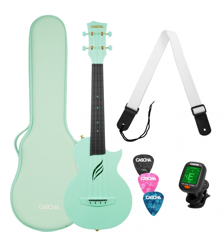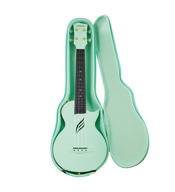 De mintkleurige Cascha Carbon Ukulele overtuigt door zijn uniekheid en het uitstekende geluid. Het is van top tot teen gemaakt van koolstofvezel (Carbon) . Daarom is de ukelele gemakkelijk schoon te maken en over het algemeen beter bestand tegen invloeden van buitenaf. Vergeleken met gewone ukeleles heeft de Cascha Carbon Ukulele een helderder en meer gedifferentieerd geluid en kan hij ook indruk maken met zijn duurzame en hoogwaardige constructie. Dankzij het lichte gewicht en de dunne body is de ukelele gemakkelijk en prettig te bespelen zonder verlies van geluid te moeten accepteren.