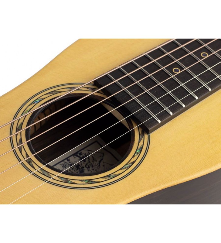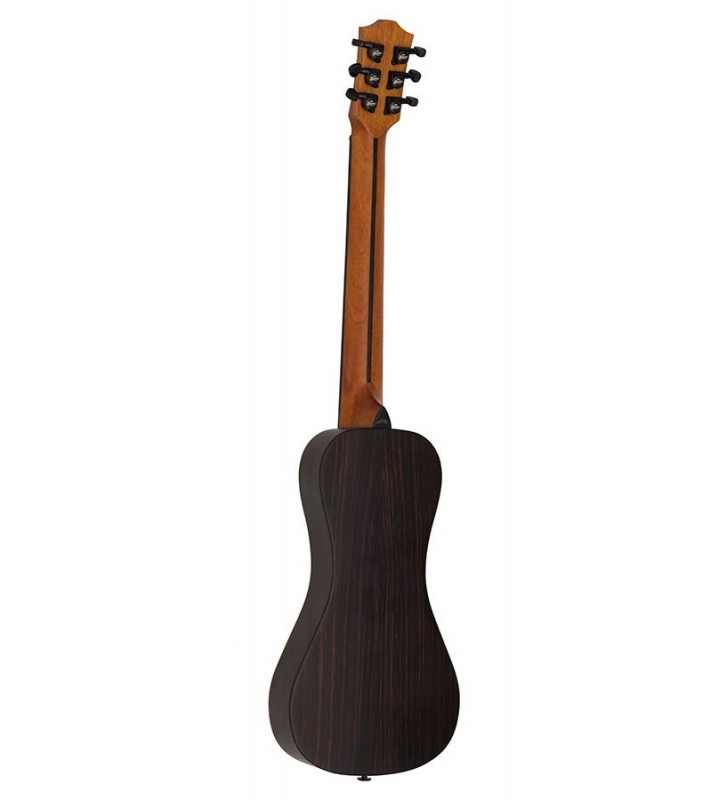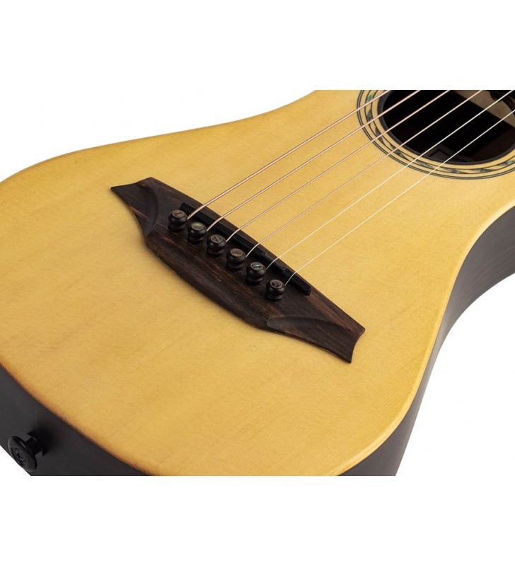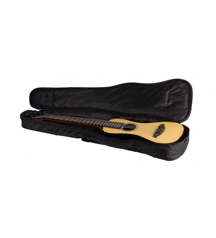 Travellergitaar, volledig massief klankhout, naturel, met riem en stevige tas